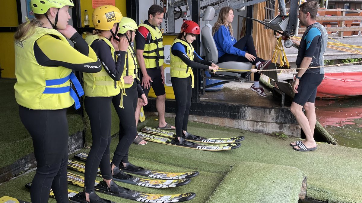 Am 07.06.23 hat das Regionale Landesamt für Schule und Bildung Osnabrück gemeinsam mit der Alfsee-Wasserski GmbH zu einem Wassersporttag eingeladen. Angeboten wird an diesem Tag Wasserski, Beachvolleyball, Beachsoccer, Kanu, Mitmachzirkus und Schlauchbootrennen. 26 Schüler*innen, Frau Neelen und Herr Stucke fuhren um 8:00 morgens mit dem Bus zum Alfsee. Dort angekommen wurde ein Gemeinschaftsfoto gemacht. Um 9:15 begaben sich alle Schüler*innen zur Neoprenanzugausgabe. Dazu gab es noch eine Schwimmweste und einen Helm. Nach einer Einweisung wurde über 1,5 Stunden Wasserski gefahren. Der zweite Termin zum Wasserski war um 12:15. Zwischendurch gab es ein Mittagessen. Danach wurde geplanscht, geplaudert und gespielt. Nach dem Umziehen machten wir uns wieder auf dem Rückweg, und kamen gegen 15:30 wieder in der Schule an.