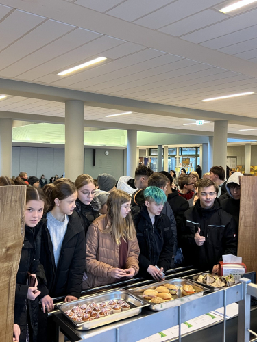 Am Donnerstag hat das Mensateam ein Frühstück angeboten. Es wurden Wraps, Schnitzelbrötchen und diverse andere Leckereien zum Kauf angeboten. Das Angebot wurde so gut angenommen von unseren Schüler*innen, so dass die Damen des Mensateams nachproduzieren mussten und das Frühstück in der 2. Pause in die Verlängerung ging. Danke an das engagierte Mensateam!