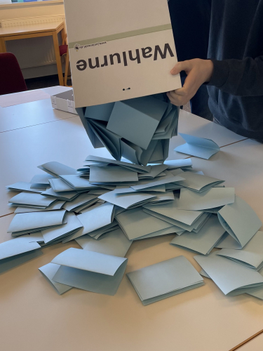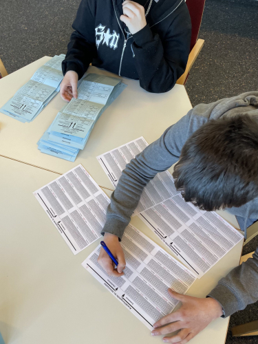 Selbst OM-Medien hat vorbeigeschaut, um sich einen Eindruck von dem Wahlvorgang und der politischen Meinung der Jugendlichen zu machen. Ein besonderes Lob geht an die Wahlhelfer und Wahlhelferinnen aus den 10. Klassen, die sich freiwillig für die Durchführung der Wahl zur Verfügung gestellt haben.