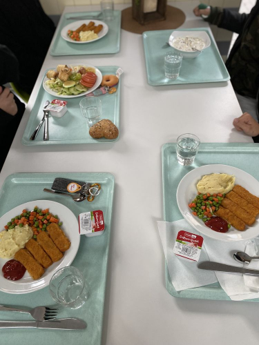 In unserer Mensa gibt es an Tagen mit Ganztagsbetreuung verschiedene Gerichte zur Auswahl. Das Team der Mensa gibt sich jeden Tag die größte Mühe, das Mittagessen für bis zu 200 Schülerinnen und Schülern zuzubereiten und auszugeben.